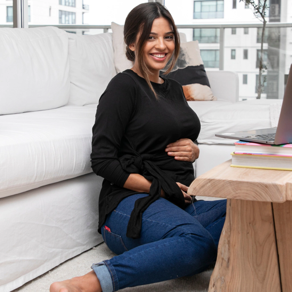 𝗥𝗲𝗺𝗲𝗿𝗮 𝗣𝗔𝗟𝗠𝗔 negra súper práctica se adapta al crecimieto de tu pancita y es ideal a la hora de la lactancia.