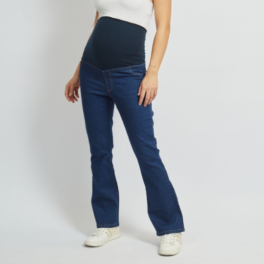 - Su calce es divino y se adapta a los cambios de tu cuerpo gracias al denim stretch con alto contenido de spandex, que acompaña sin apretar.